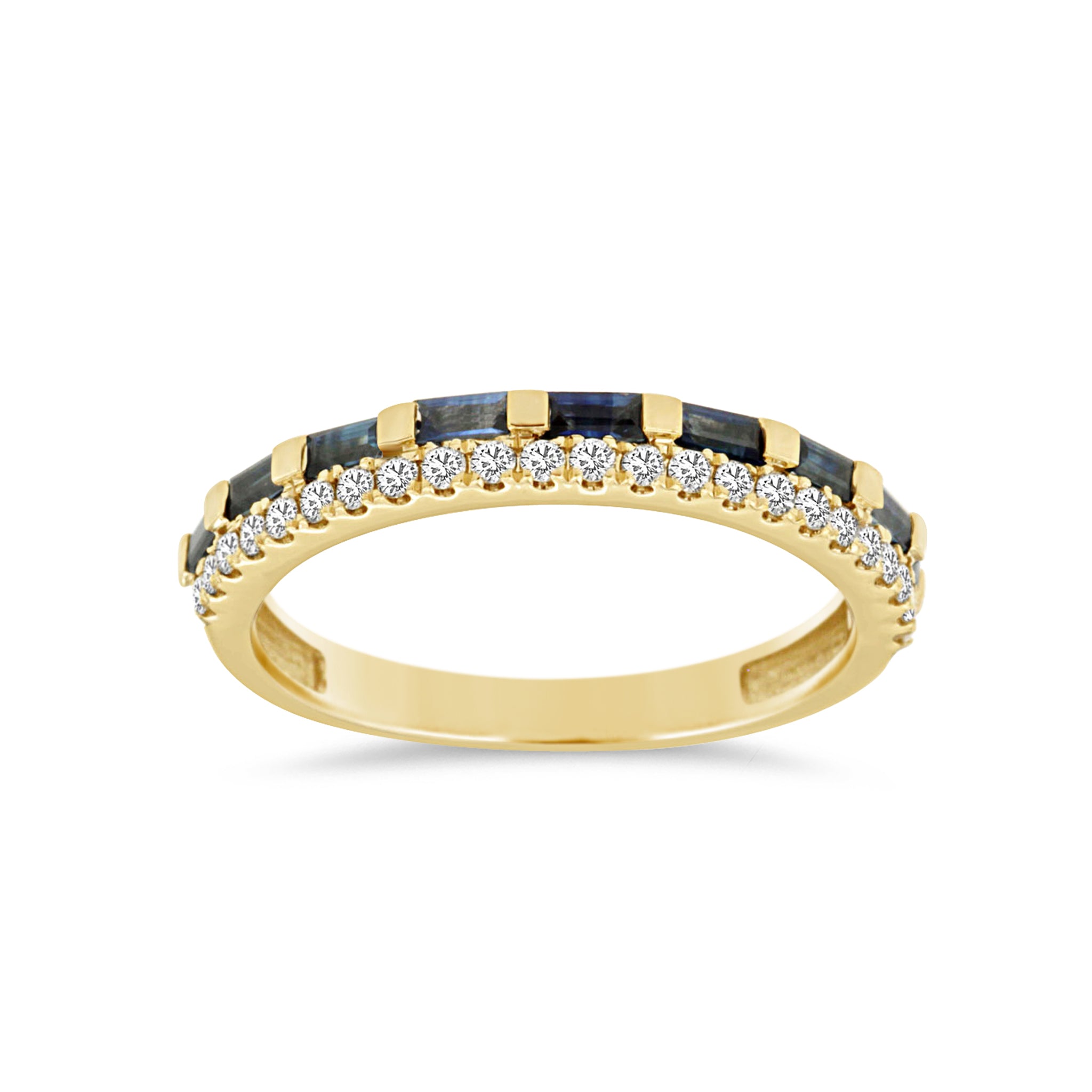 14K Yellow Gold Double Row Diamond and Sapphire Ring