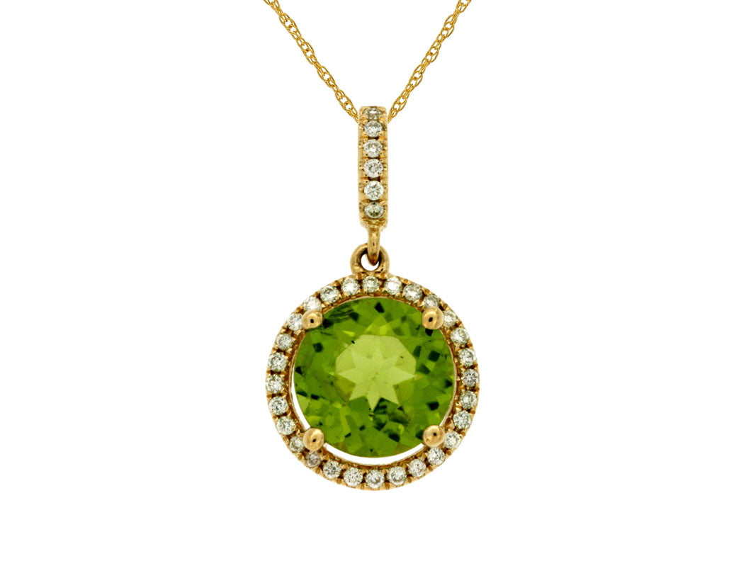 Peridot & Diamond Pendant in 14K Yellow Gold