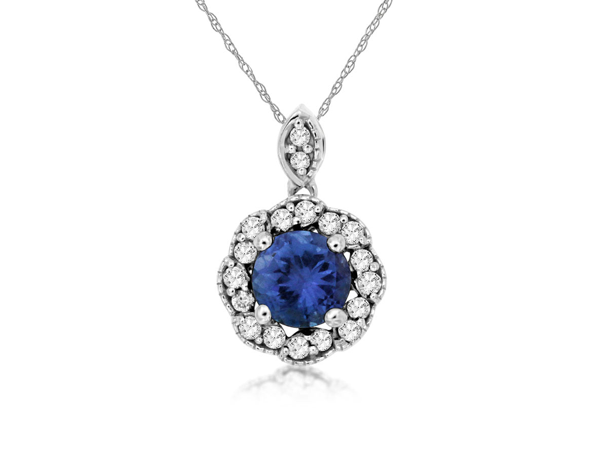 A beautiful tanzanite and diamond necklace crafted in 14K White Gold. The center features approximately 0.62 ct of tanzanite accented with 0.16 ct of diamonds. Perfect for adding color and sparkle to your everyday look or a special occasion.