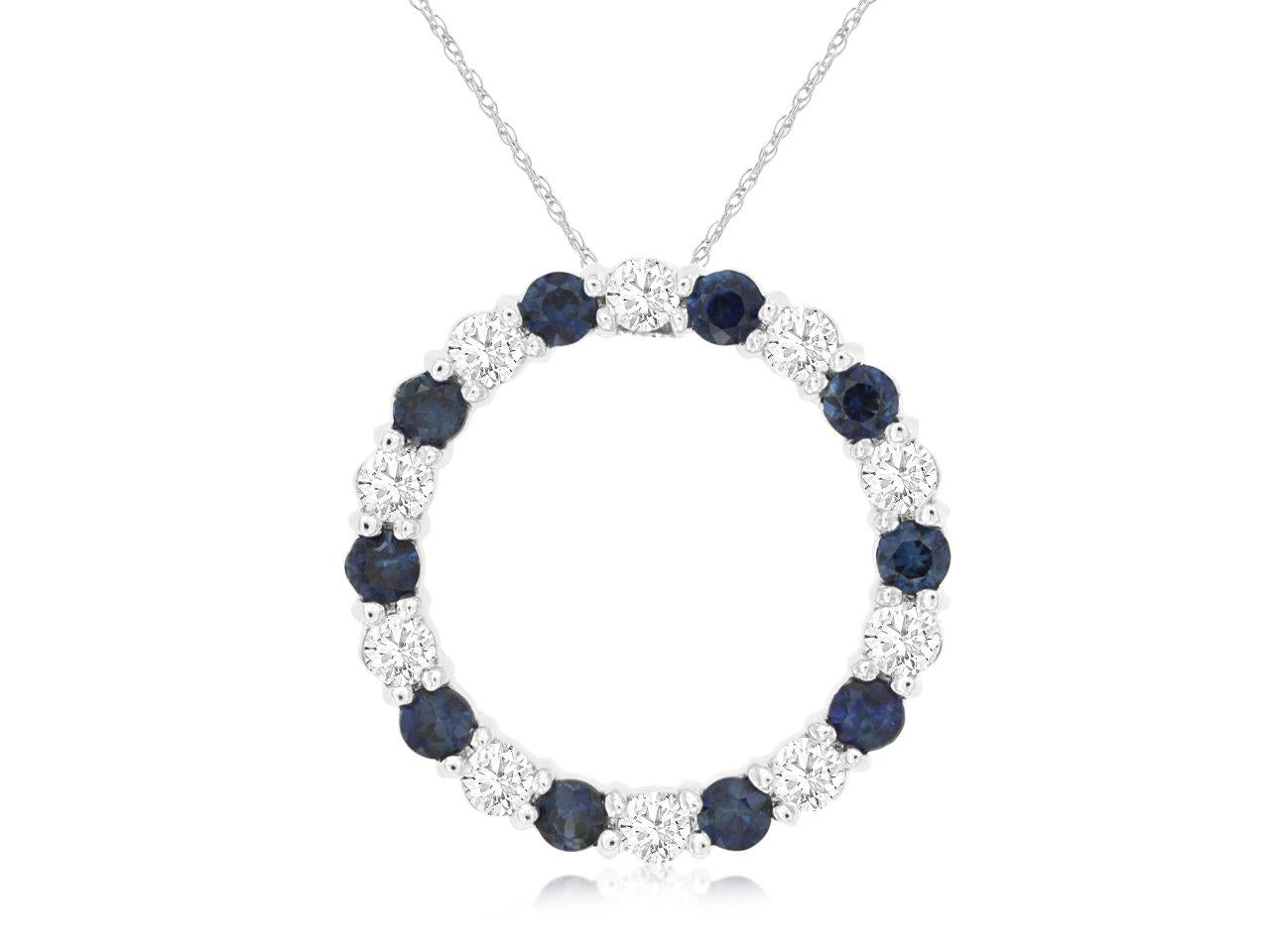 A beautiful sapphire and diamond necklace crafted in 14K White Gold. Features approximately 0.50 ct of sapphire accented with 0.50 ct of diamonds. Perfect for adding color and sparkle to your everyday look or a special occasion.