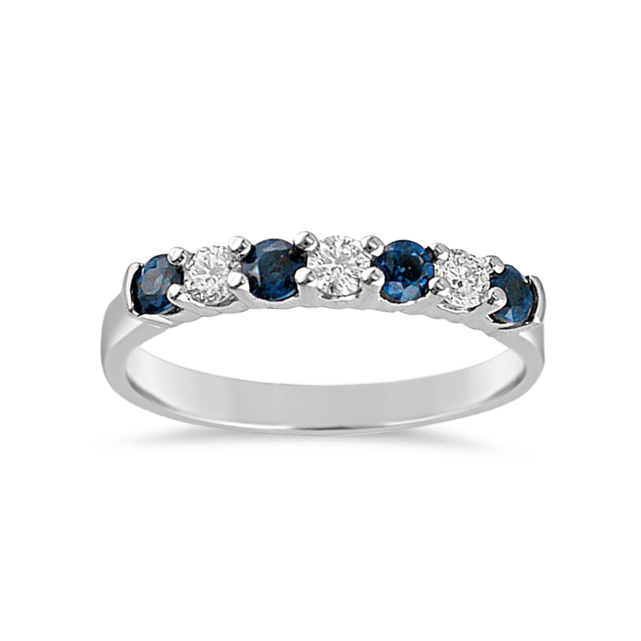 14k White Gold Diamond and Sapphire Alternating Wedding Band