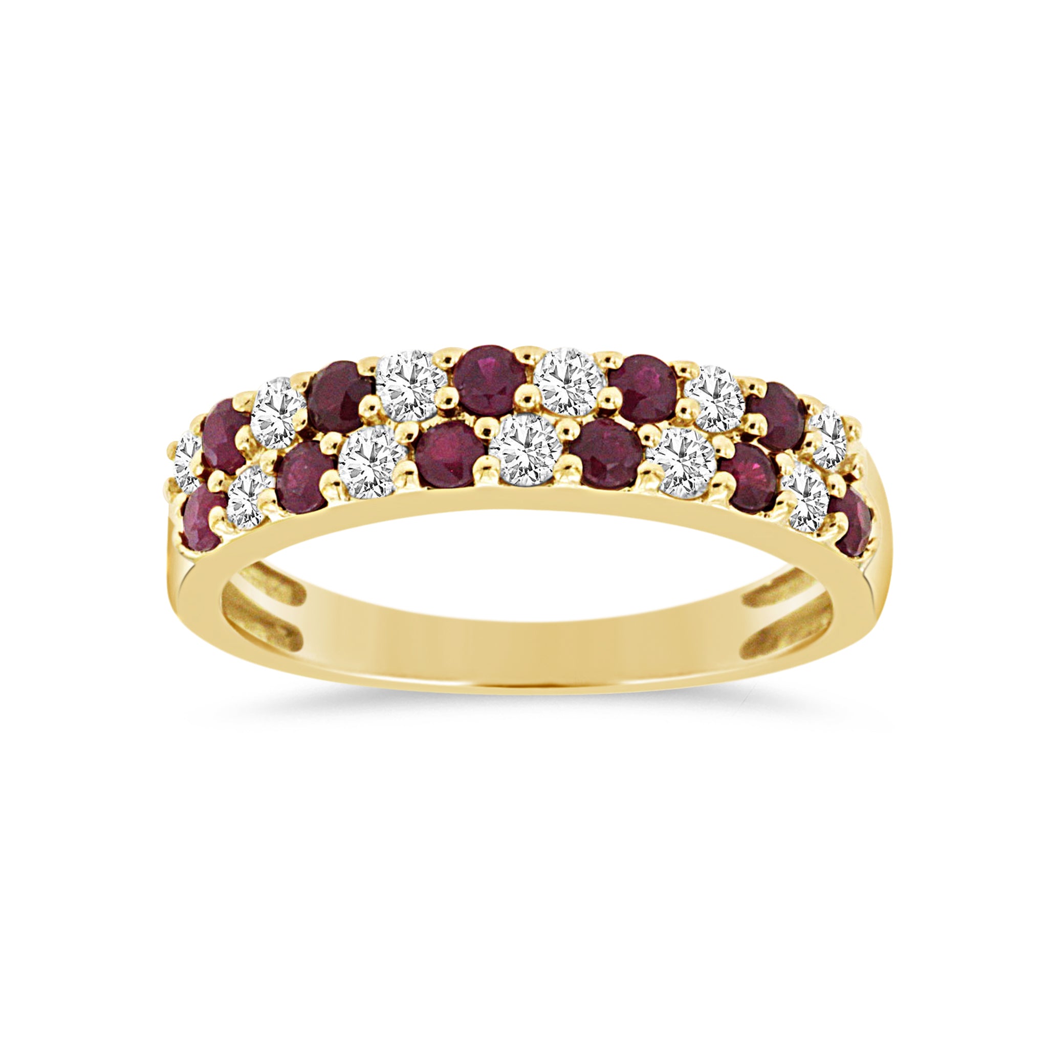 14K Yellow Gold Double Row Alternating Diamond and Ruby Ring
